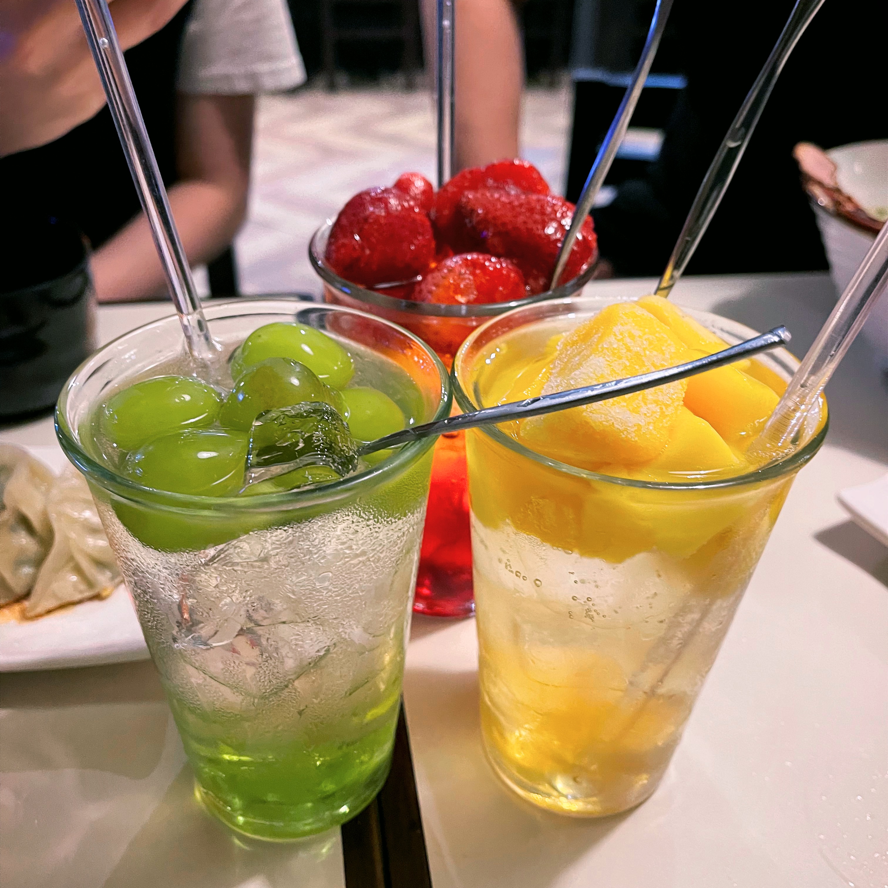 샤인머스캣 하이볼, 애플망고 하이볼, 딸기 하이볼인데 샤인머스캣 하이볼이 제일 비쌌어요. 12000원이었나?
