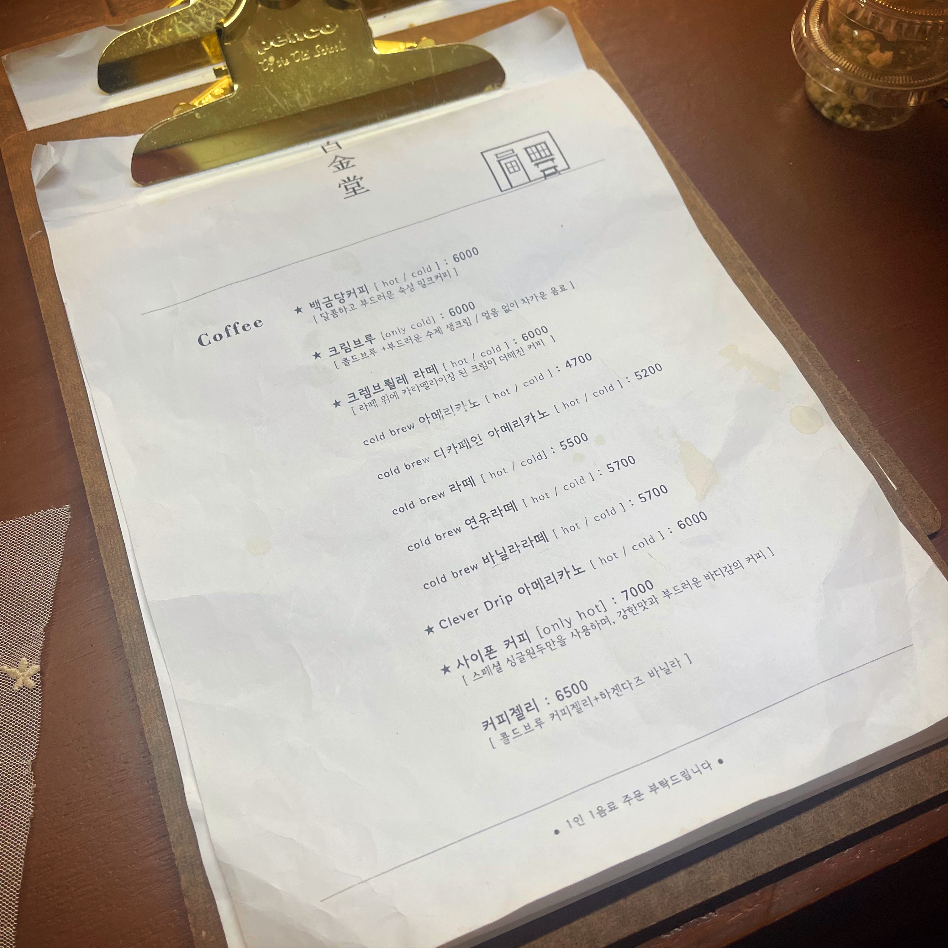 그리고 가장 먼저 서빙된 백금당커피!