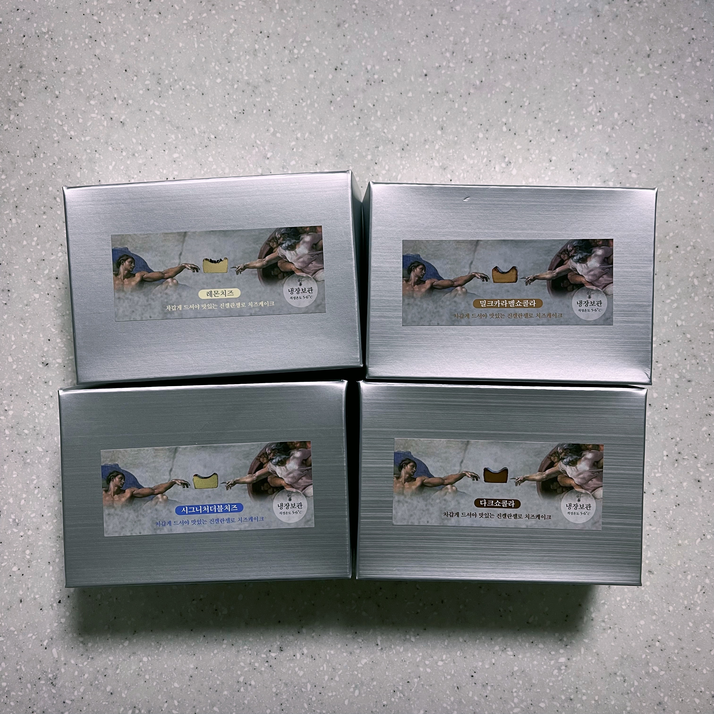 시그니처 치즈 케이크에선 진한 치즈향이 나고 레몬 치즈에선 레몬향이 가득했어요. 밀크카라멜에선 옛날 카라멜 맛이 났고 다크쇼콜라는 흔히 먹는 초콜릿 브라우니 맛?