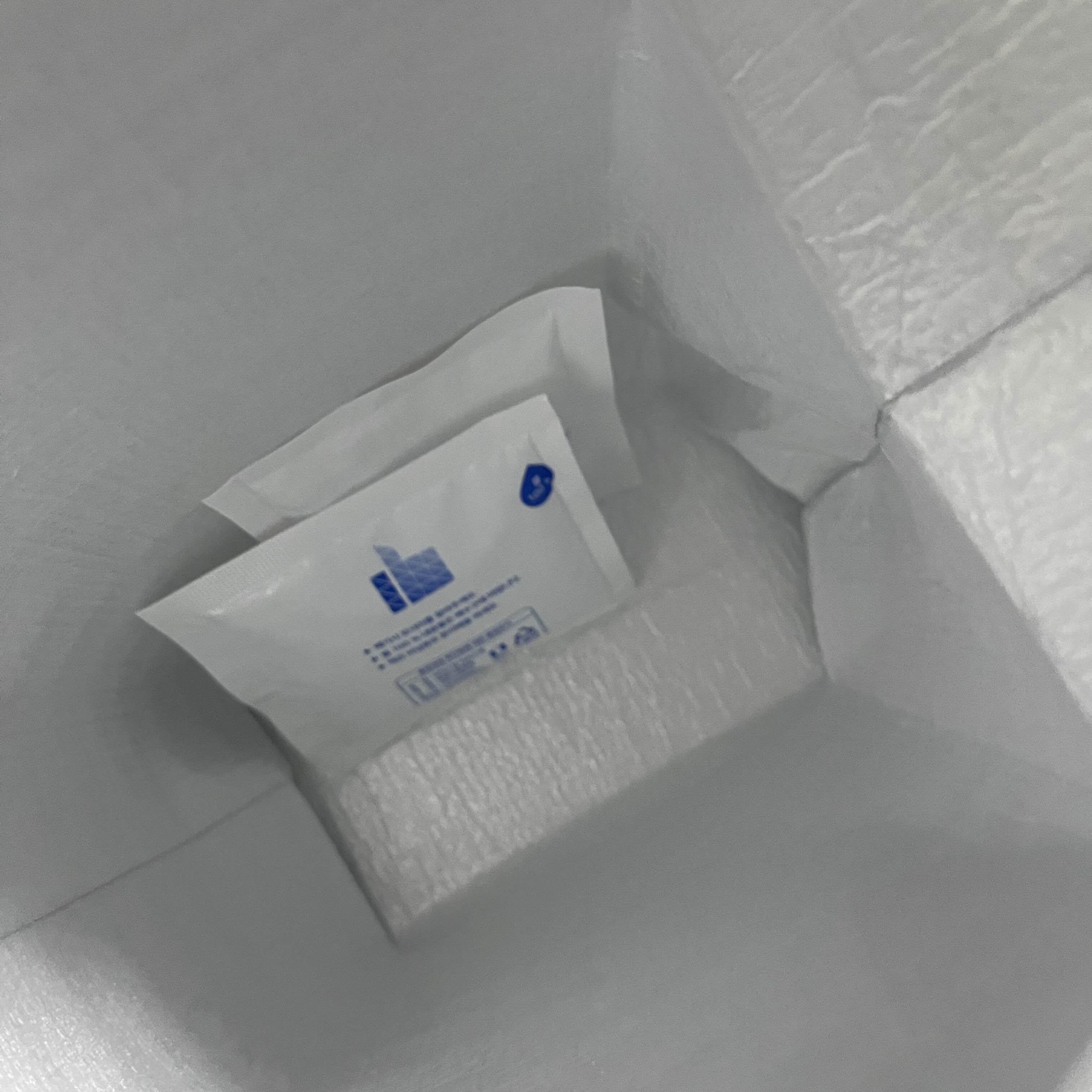 운동 갔다가 먹으려고 보냉팩 포장 요청드렸는데 4시간 정도 걸릴 것 같다고 했더니 이렇게 작은 얼음팩 두 개를 같이 넣어주셨어요.