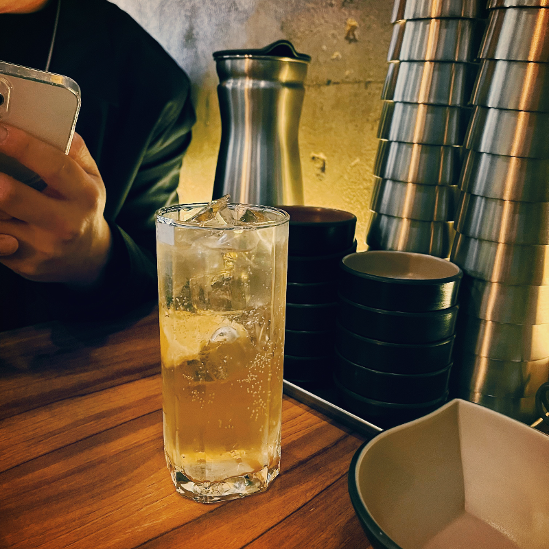 같이 간 친구는 한우국수를 골랐고 제임슨 하이볼과 새우튀김까지 주문했습니다. (요즘 입이 제대로 터져서🥲)