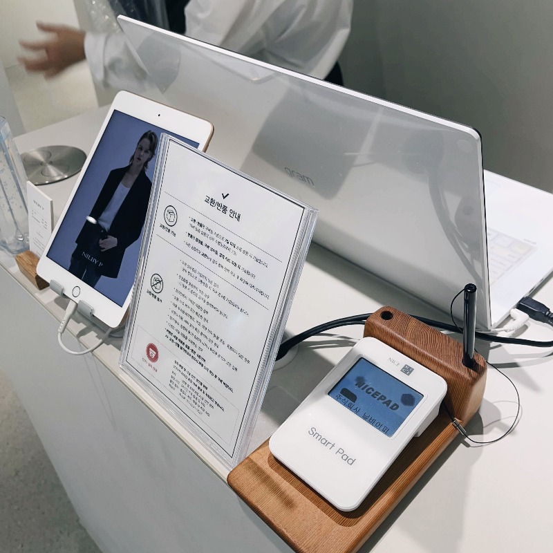 화이트톤의 외벽과 커다란 거울 덕분에 피팅 후 바로 제 모습을 확인하기 좋았어요.