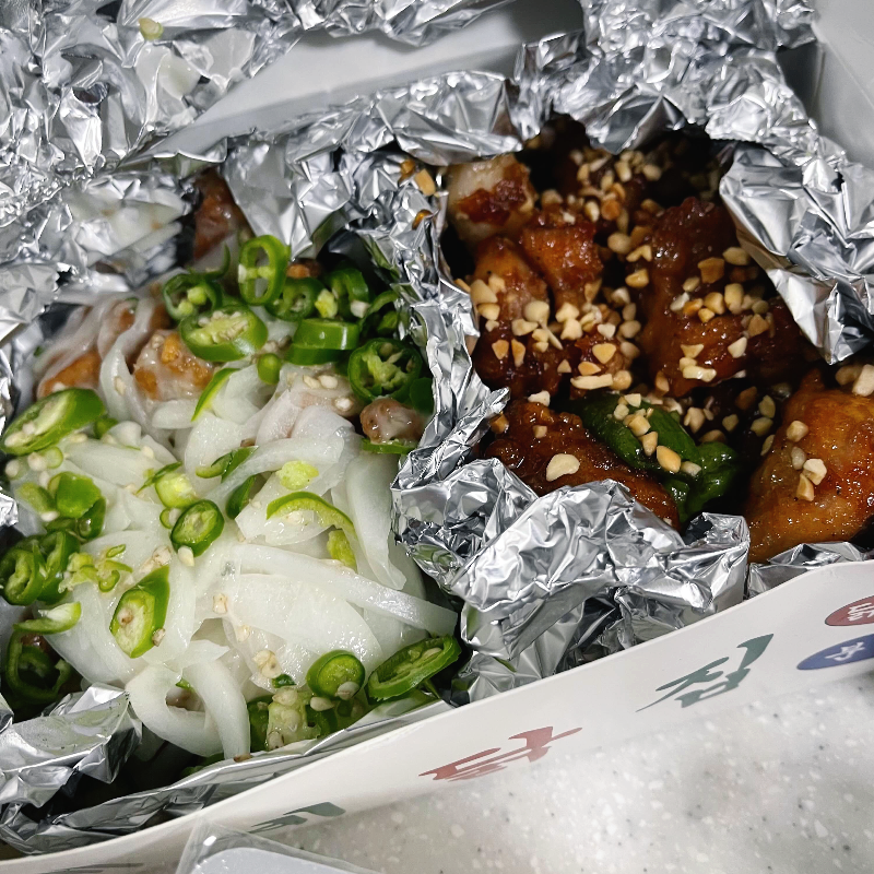 너무 닭강정만 먹으면 물릴 것 같아서 주문한 건데 확실히 이게 있으니 덜 물리더라구요.