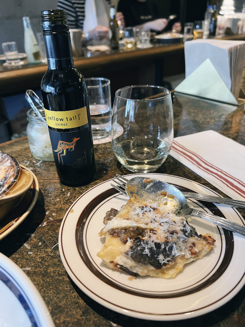 저희는 앙트레인 타번식 수제 감자 튀김, 생면 파스타 메뉴인 오징어 먹물 파스타, 라자냐 & 미트 메뉴인 빈치 그라씨(마르케 스타일 라자냐), 그리고 레드와인과 화이트와인을 주문했습니다.
