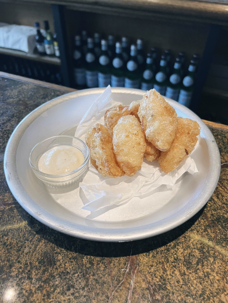 맥주로 만든 반죽으로 튀겨낸 핸드컷 웨지 포테이토와 마늘 아이올리 소스라고 적혀있네요.