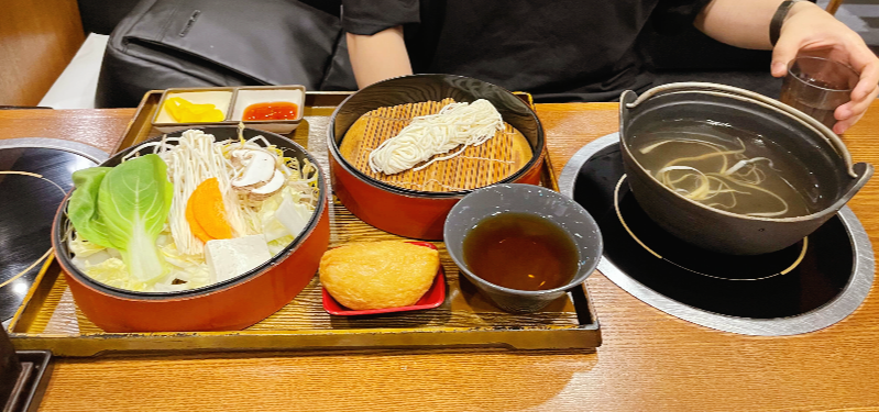 스키야키를 좋아하기도 하고 냉자루소바도 맛있겠다 싶어서 여기서 식사하는 걸로 결정!