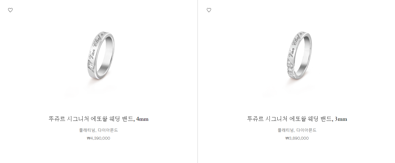 저는 솔직히 불가리 메리미처럼 너무 밋밋할 거 같다 싶어서 땅드레망이랑 뉴욕 웨딩 밴드는 보지도 않았어요.