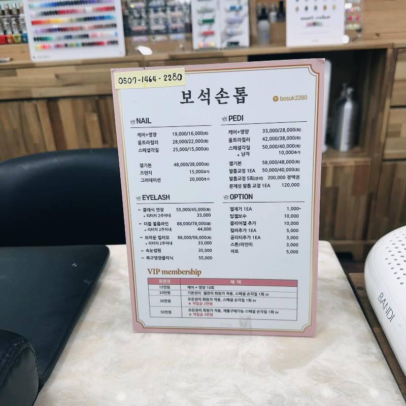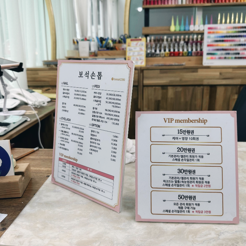 나머지 네일과 페디, 속눈썹 연장 등은 가격표를 참고해주세요.