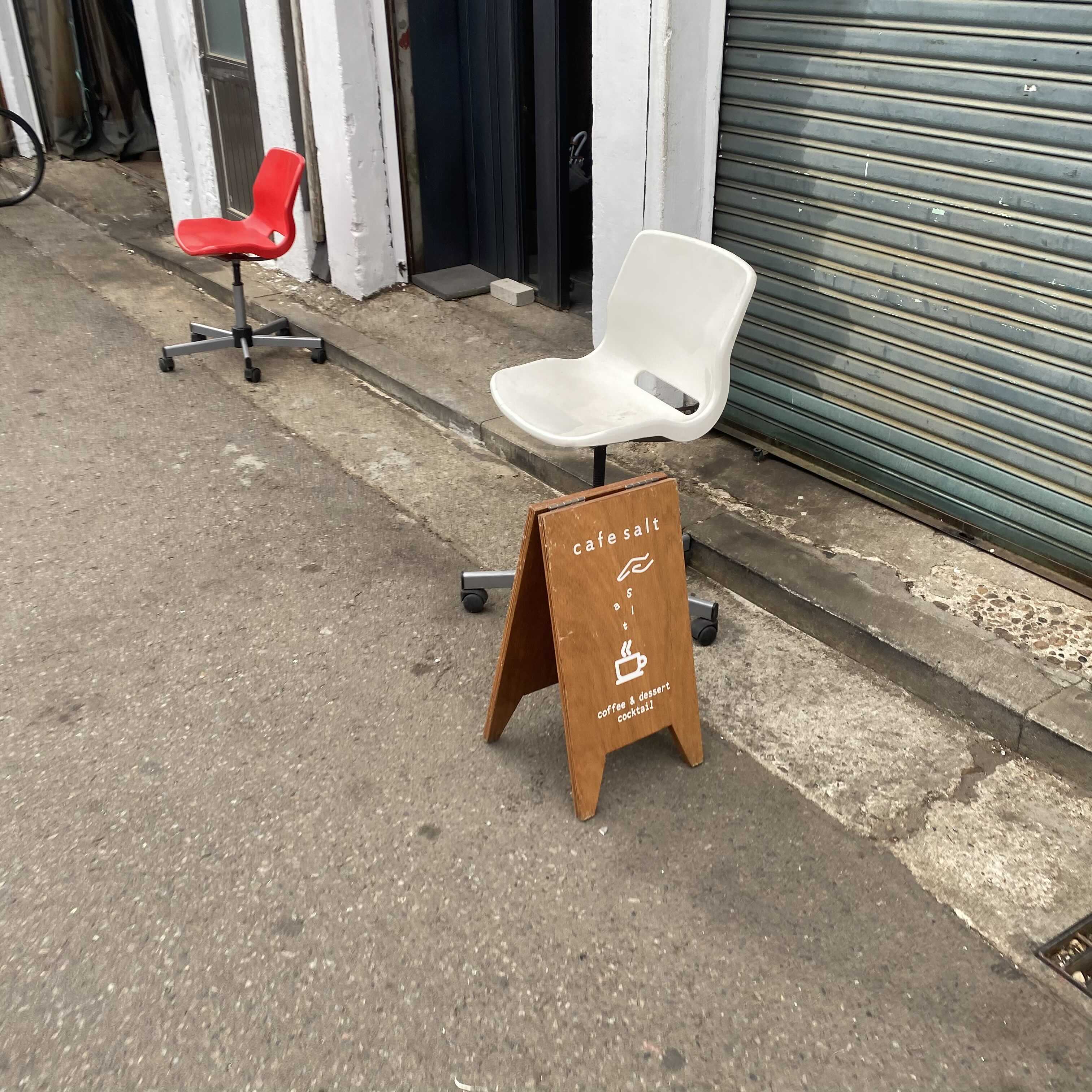 구도 보시면 아시겠지만 카페 솔트라는 간판(?)이 굉장히 시선의 윗쪽에 있어서 입간판을 보시는게 더 눈에 띌 거 같아요.