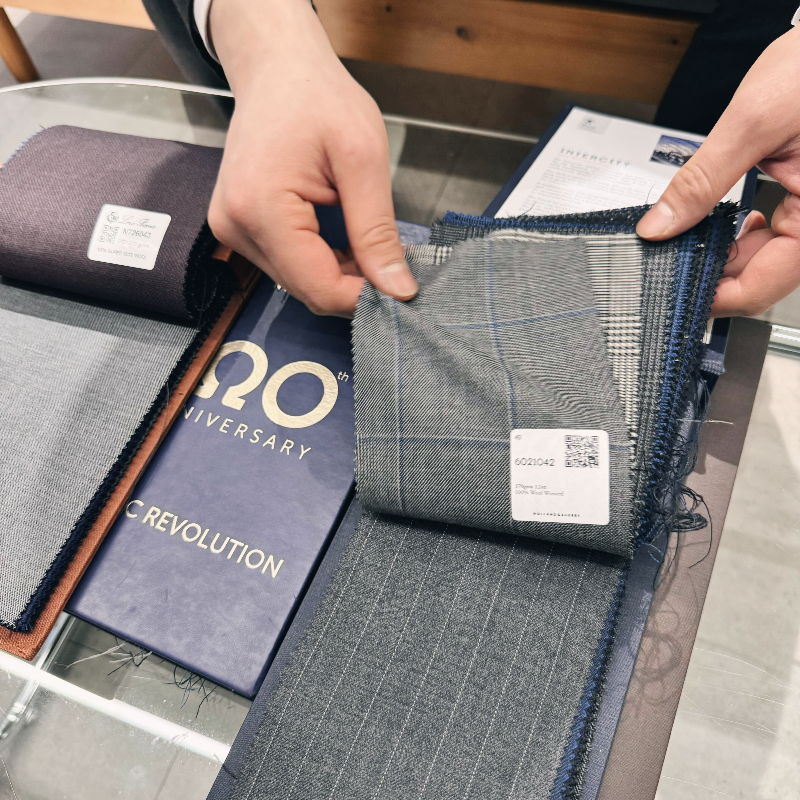 3가지 원단 모두 사계절 착용 가능한 원단이지만 상대적으로 더위를 많이 탄다면 얇은 이태리 원단을, 추위를 많이 탄다면 탄탄한 영국 원단이 좋을 것 같았어요.