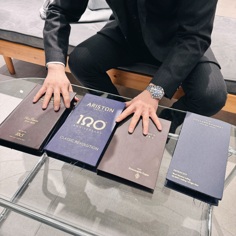 국내 제일모직 원단 뿐만 아니라 이탈리아, 영국의 해외 브랜드 원단까지 전부 구비되어있어요.