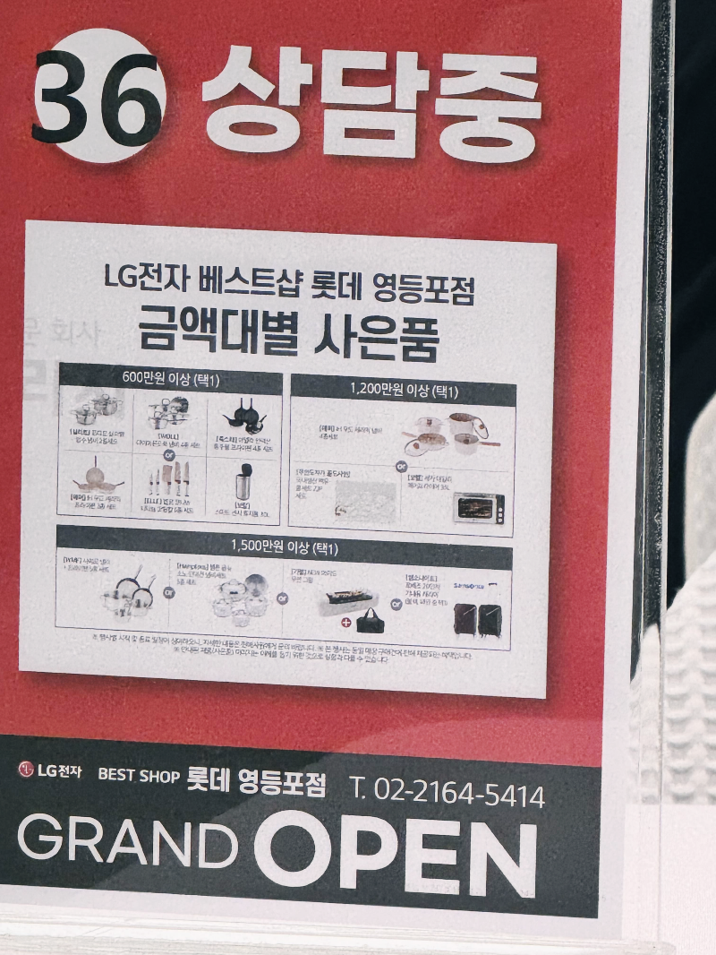 안녕하세요, 가전은 오픈점 혜택이 가장 좋다는 말 다들 들어보셨죠? ㅎ.ㅎ 저희 커플은 롯데웨딩마일리지 제도를 이용할 생각이어서 롯데백화점에 입점한 LG 베스트샵으로 방문했어요. 웨딩마