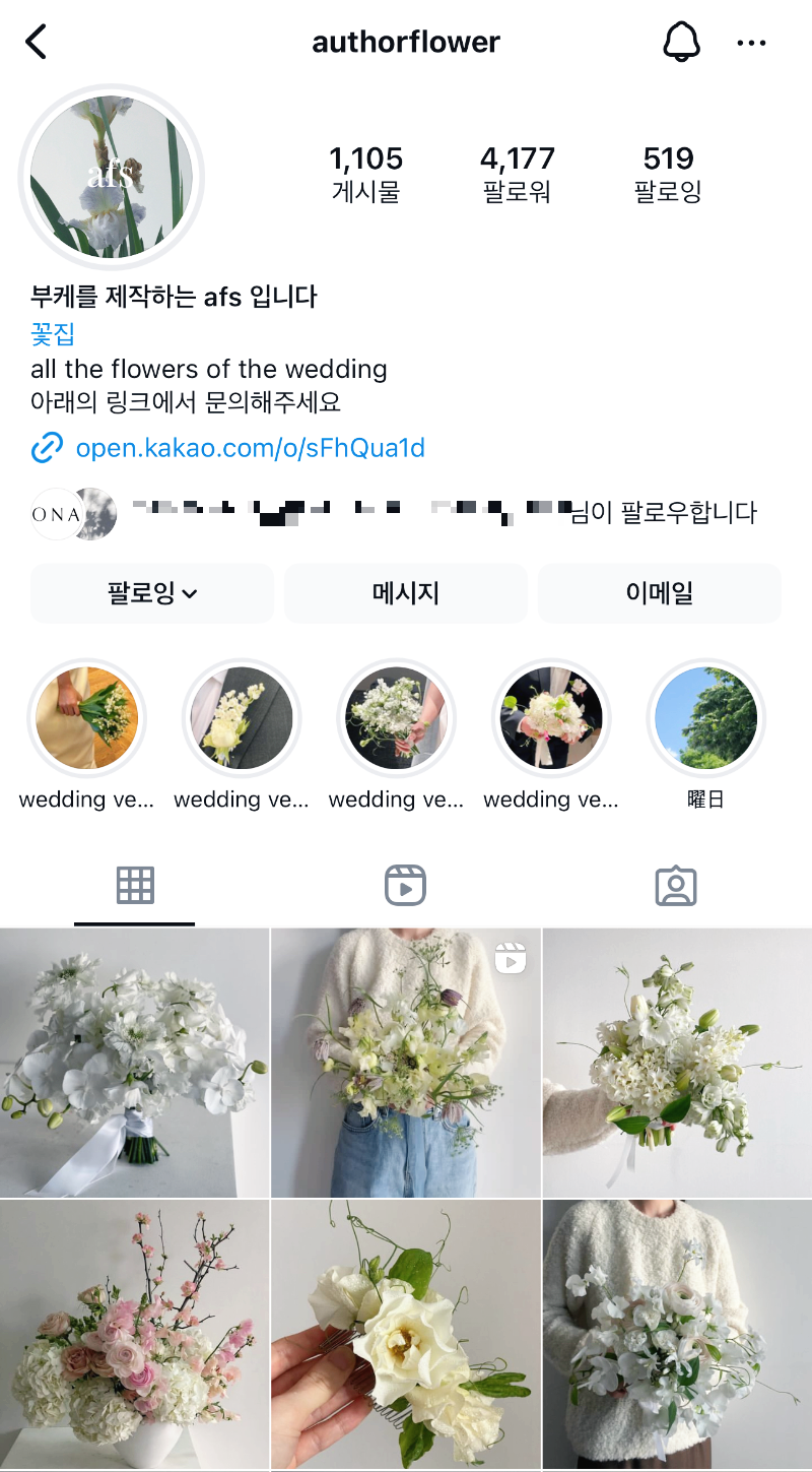 제가 촬영용 부케를 주문한 곳은 afs (author flower studio)예요.