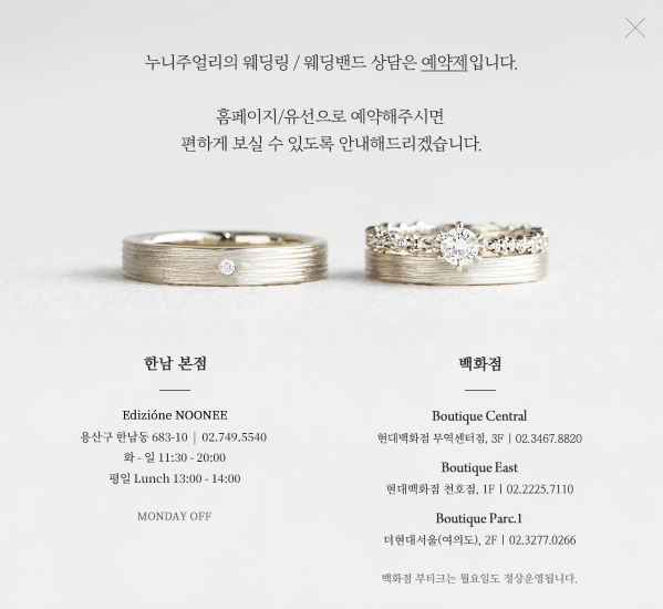 누니주얼리의 웨딩밴드 상담은 예약제이므로 꼭 유선으로 예약확인 후 방문하셔야 해요!