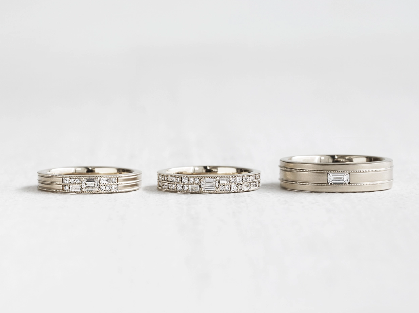 반짝이는 걸 원래 좋아하는 스타일이라 디자인에 후회는 없는데 이미 좋은 다이아 반지는 있으니 이번엔 심플한 웨딩밴드를 찾아보려고 했어요.
