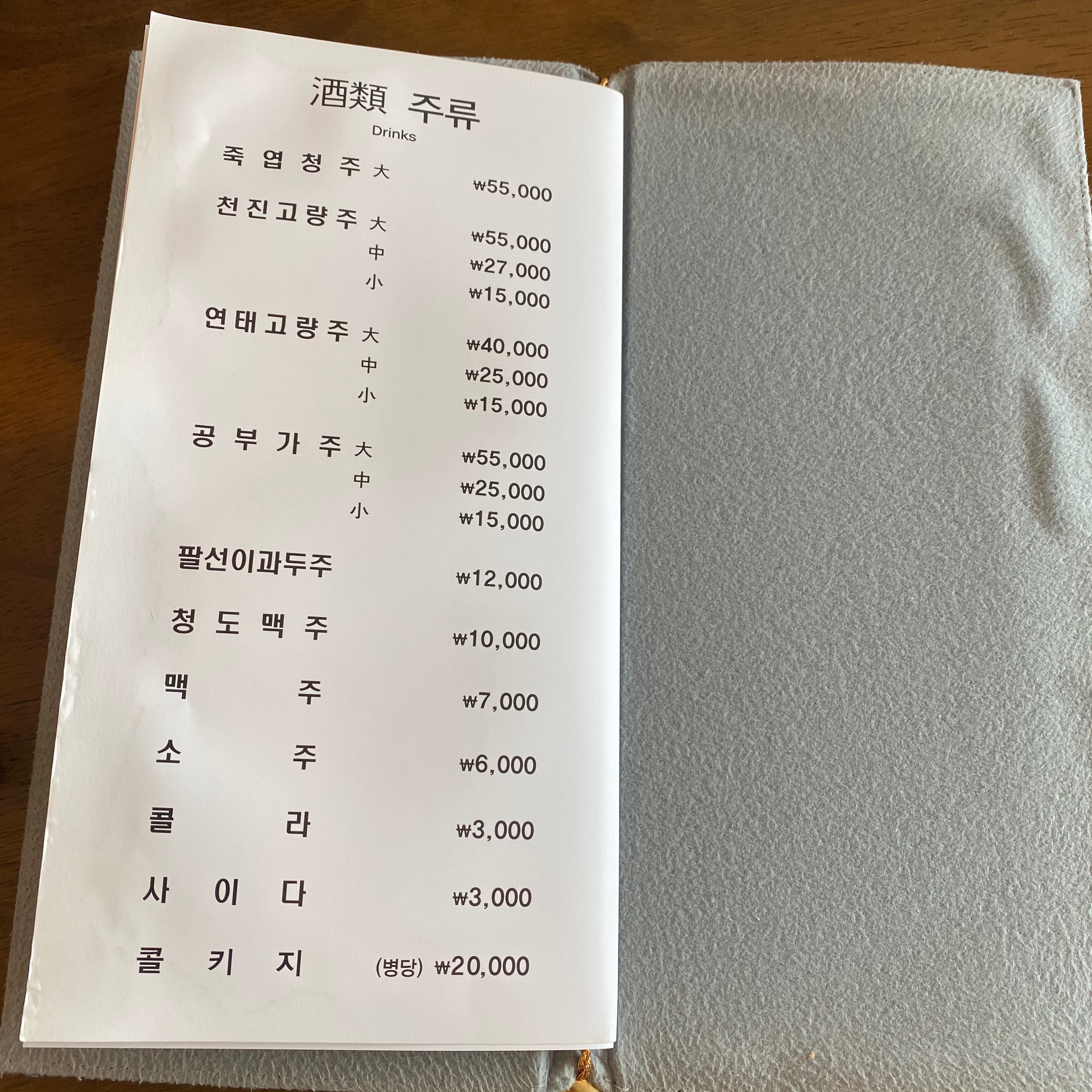 최신 메뉴판입니다. :-)