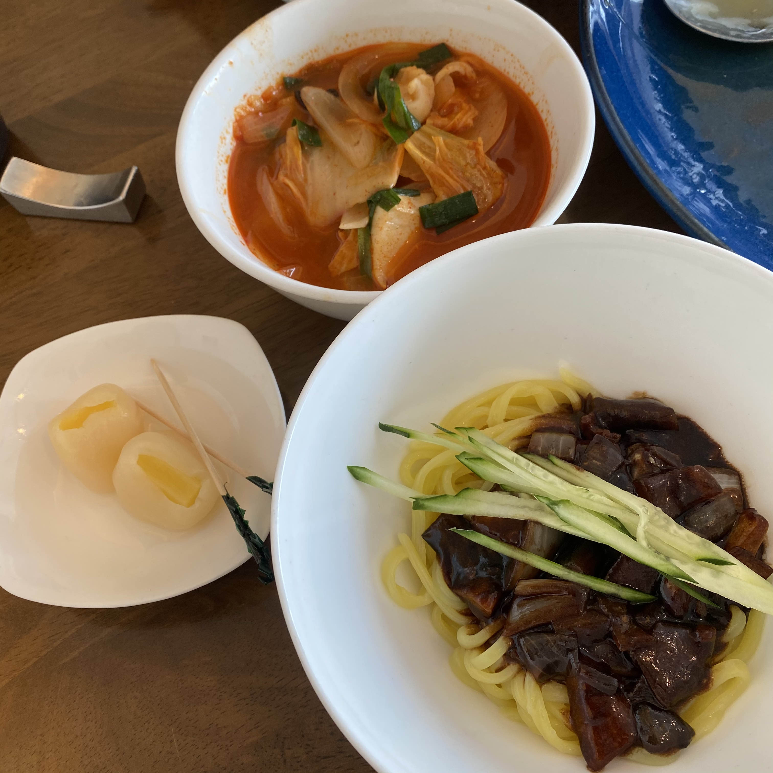 짬뽕 먹고 나서 먹어서 그런가 짜장면은 상대적으로 삼삼해요. 짠 맛보단 단 맛이 강합니다.
