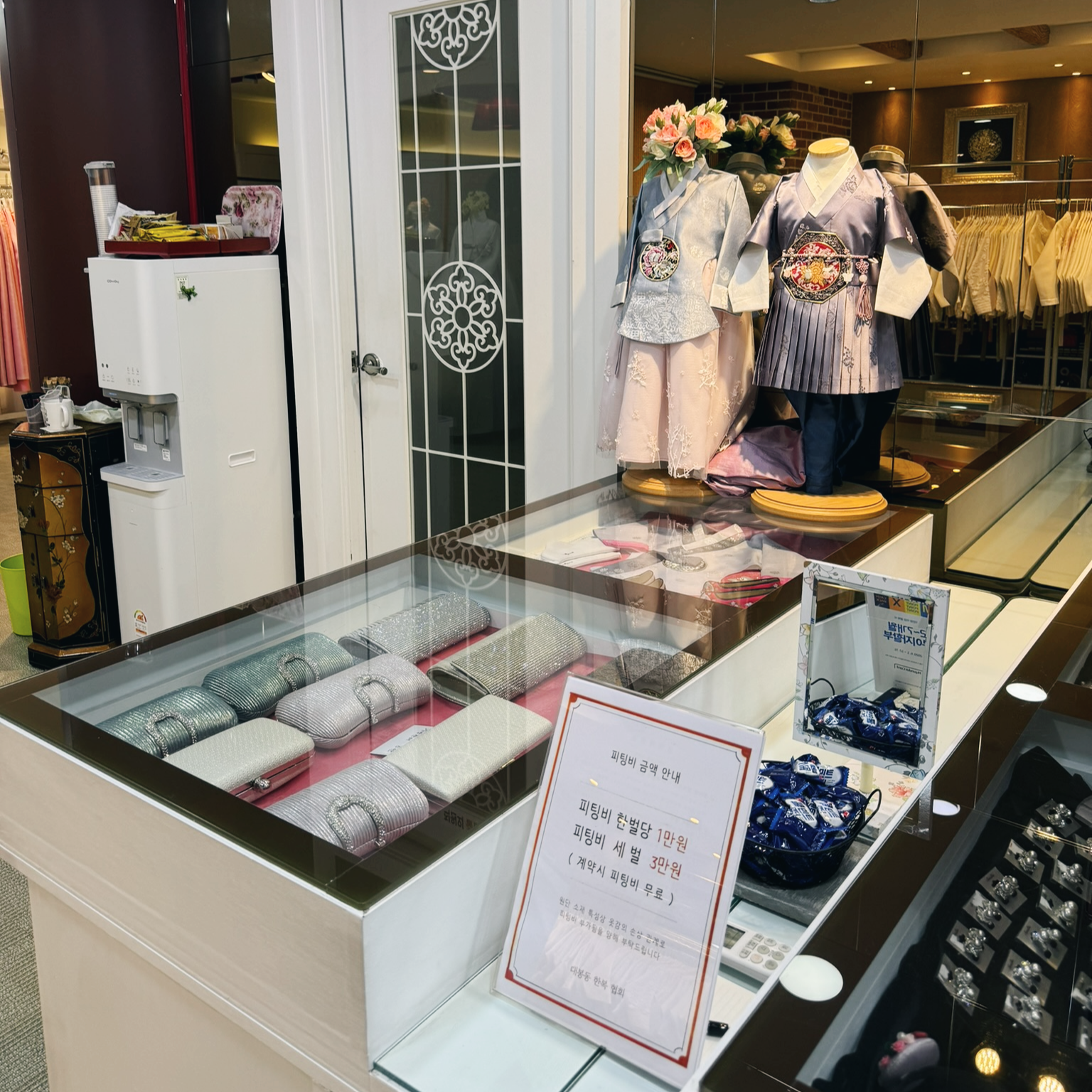 어머님들의 취향을 100% 만족하기엔 장식 갯수 제한이 좀 아쉬웠고 개인적으로는 피팅룸이 있다는 것 제외하고는 서문시장과 크게 다른 점을 못 느꼈던 거 같아요. 그냥 정말 평범한 한복집이라는 느낌!