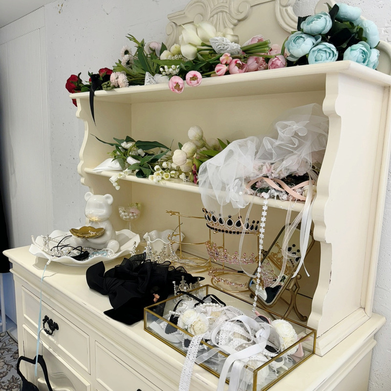 소품도 각종 부케, 화관, 베일, 레이스, 리본, 진주, 티아라 등등 정말 많았어요.