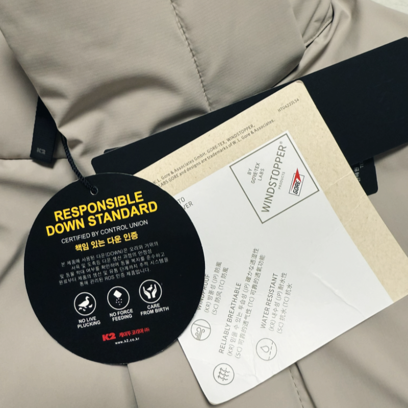 K2는 특정 사이즈 기준으로 얼마만큼의 우모가 들어갔는지 처음부터 공시해두어서 구매 기준을 세우는데 좀 더 좋았어요.
