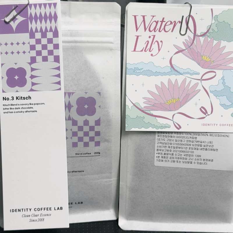 그런 와중에 고민하다가 구매하게된 아이덴티티커피랩의 키치 블렌드와 워터릴리입니다.