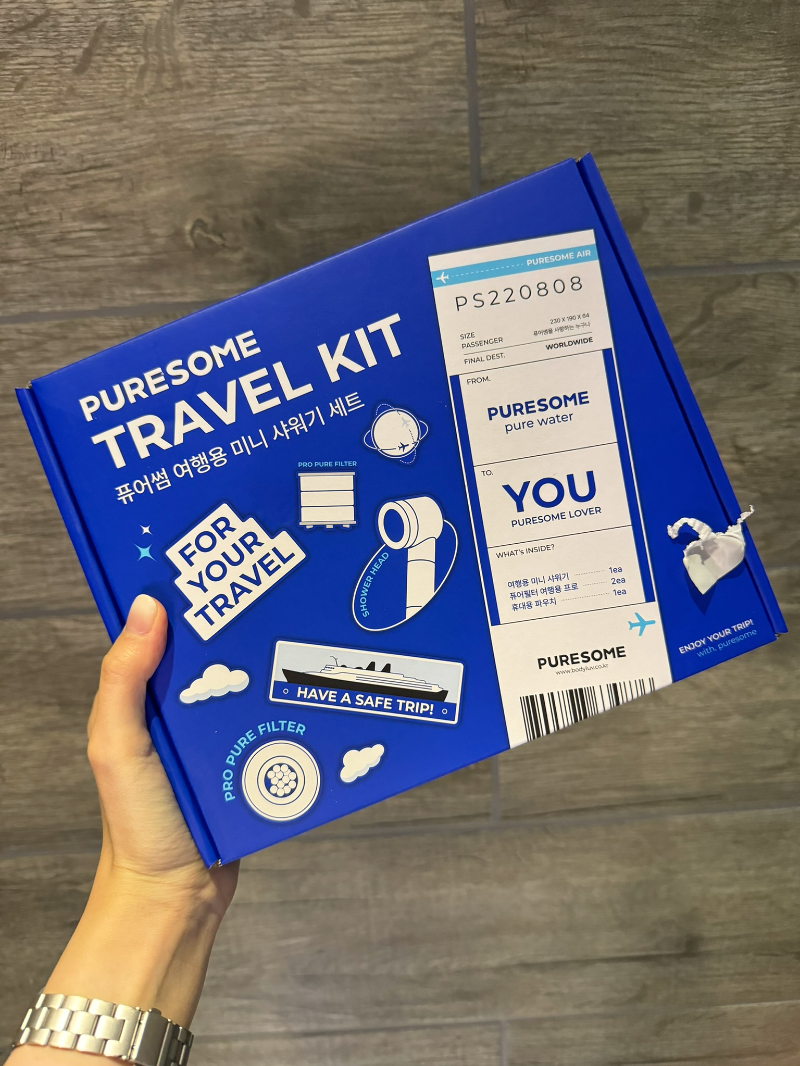 두번째로는 퓨어썸 샤워기 필터 세트! 집에서도 필터 샤워기 쓰긴 하는데 여행용 크기는 아니라서 새로 샀어요.