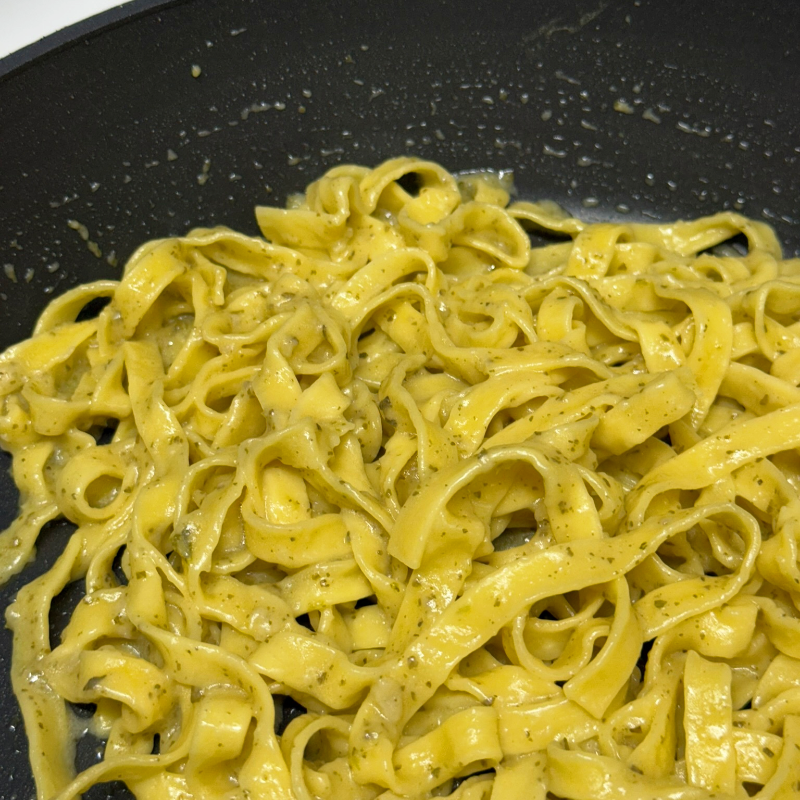 소스가 보글보글 끓어오르면 팬의 불을 끄고 미리 삶아둔 면을 옮겨 담아 에멀젼하면 끝이예요.