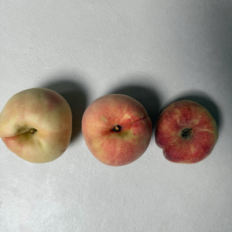 순서대로 백도 딱딱이, 물렁이, 납작복숭아입니다.