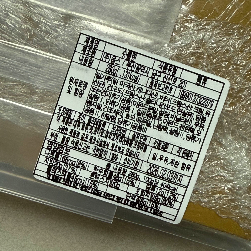 혹시나 궁금하실까봐 옵스 슈톨렌 영양성분표도 찍어왔어요.