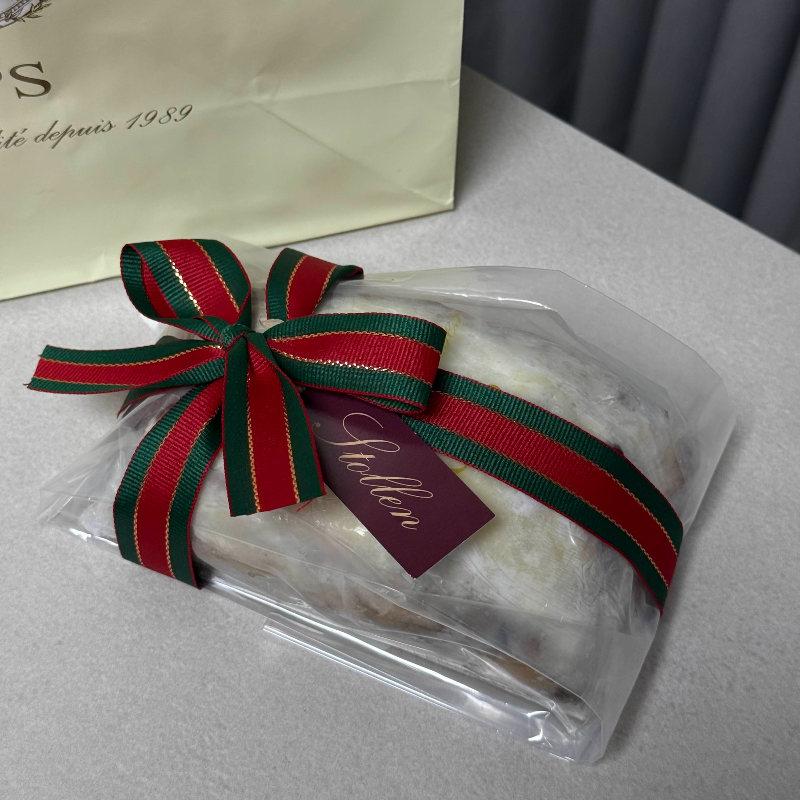 크리스마스 느낌 물씬 나는 리본이네요. 작게 슈톨렌이라고 태그도 붙어있어요 ㅎ.ㅎ