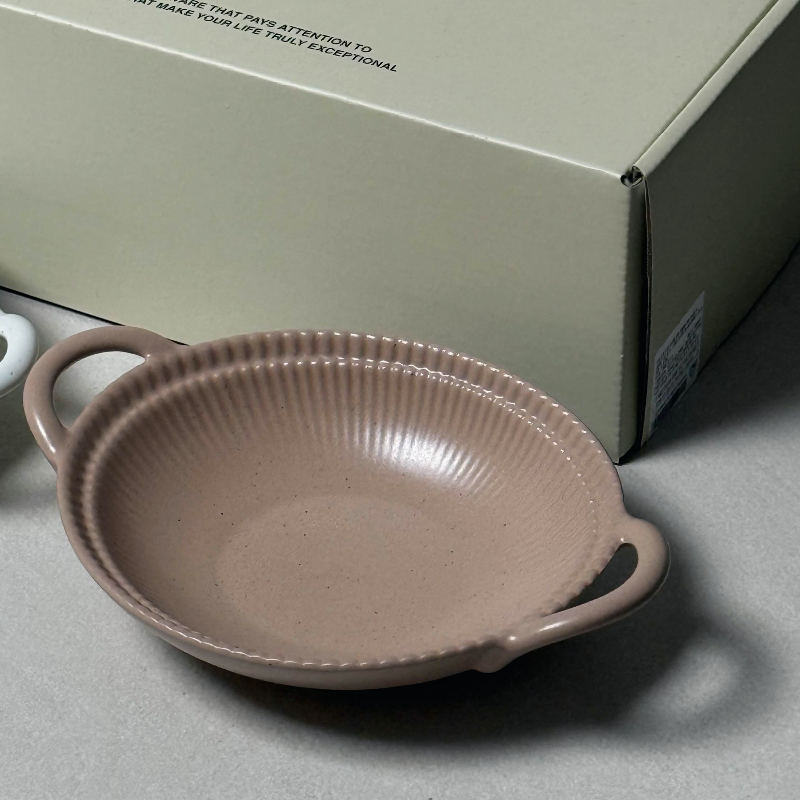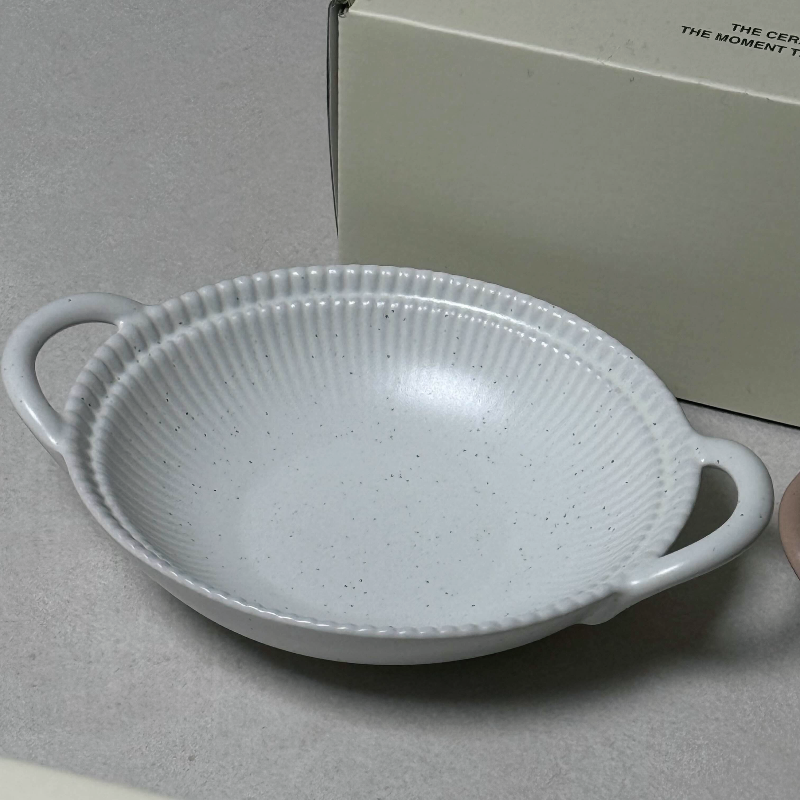 양쪽에 손잡이가 달린 오발볼인데 과일이나 간식, 혹은 반찬 등을 옮겨담을 수 있는 앞접시로 많이 쓴다고 하네요.
