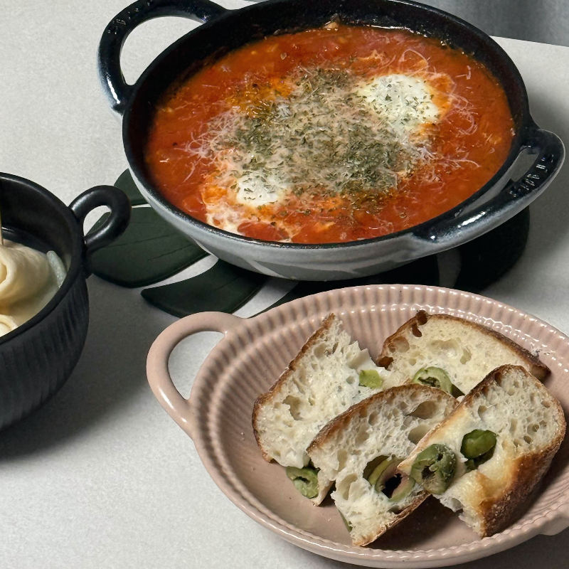 일단 샥슈카는 스타우브 베이비웍에 요리해서 그대로 내어놓았답니다. 생긴게 오덴세 납작볼이랑 거의 비슷하죠? ㅎ.ㅎ
