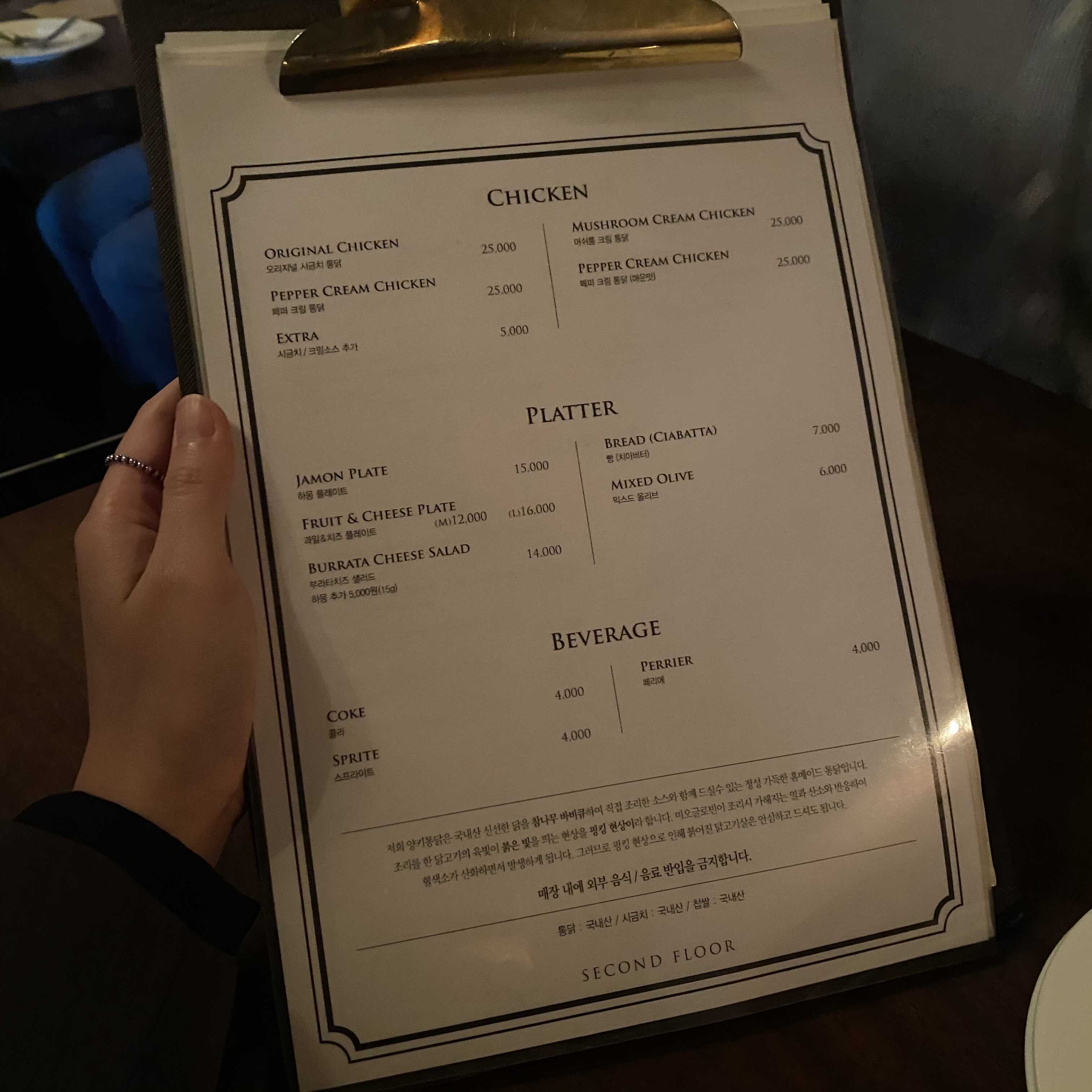 메뉴판입니다:) 뒤에 넘겨보면 주류 메뉴도 있는데 저희는 그냥 음식만 주문했어요.