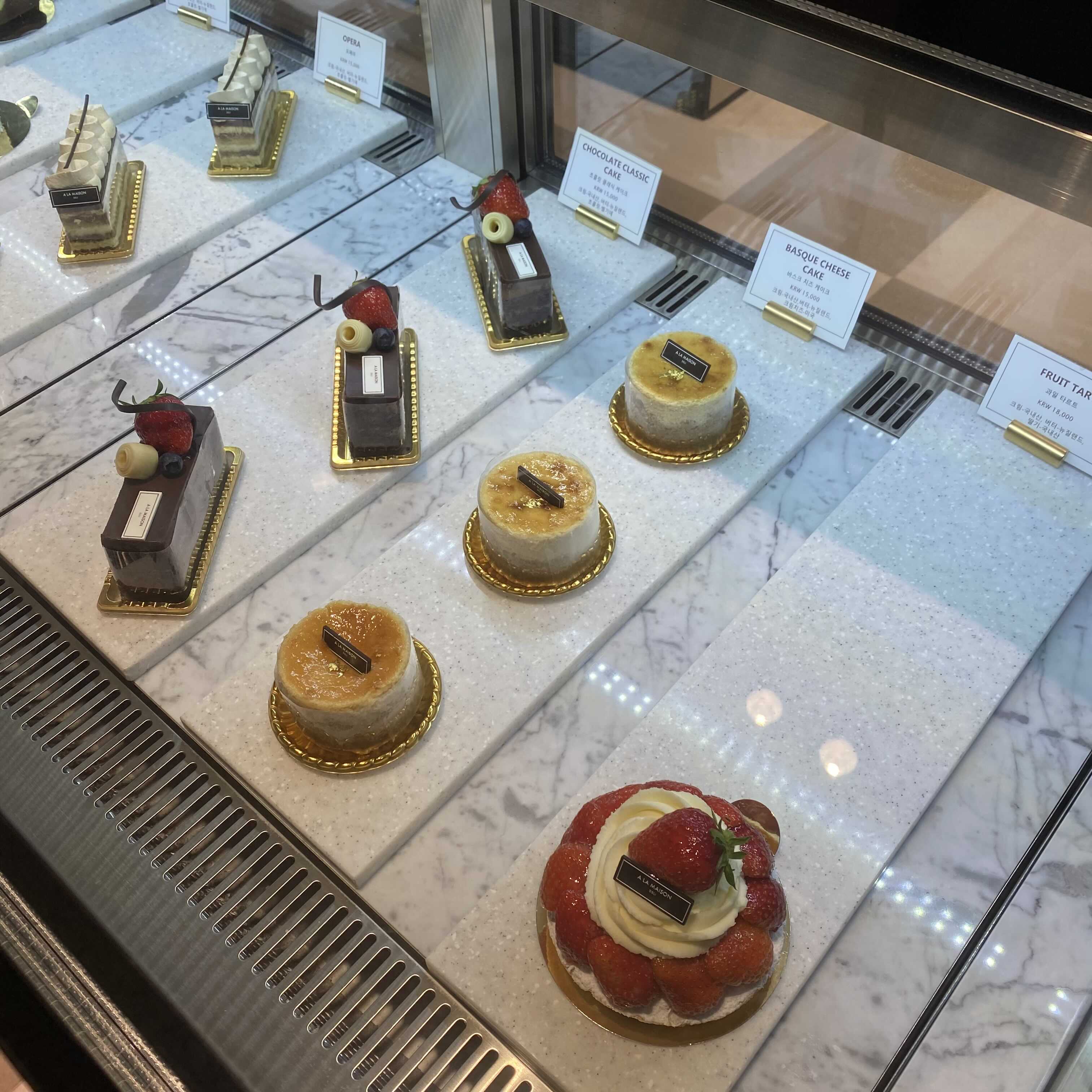 생크림, 초코, 타르트, 바스크 치즈 등등 여러 종류의 케이크가 있었어요.