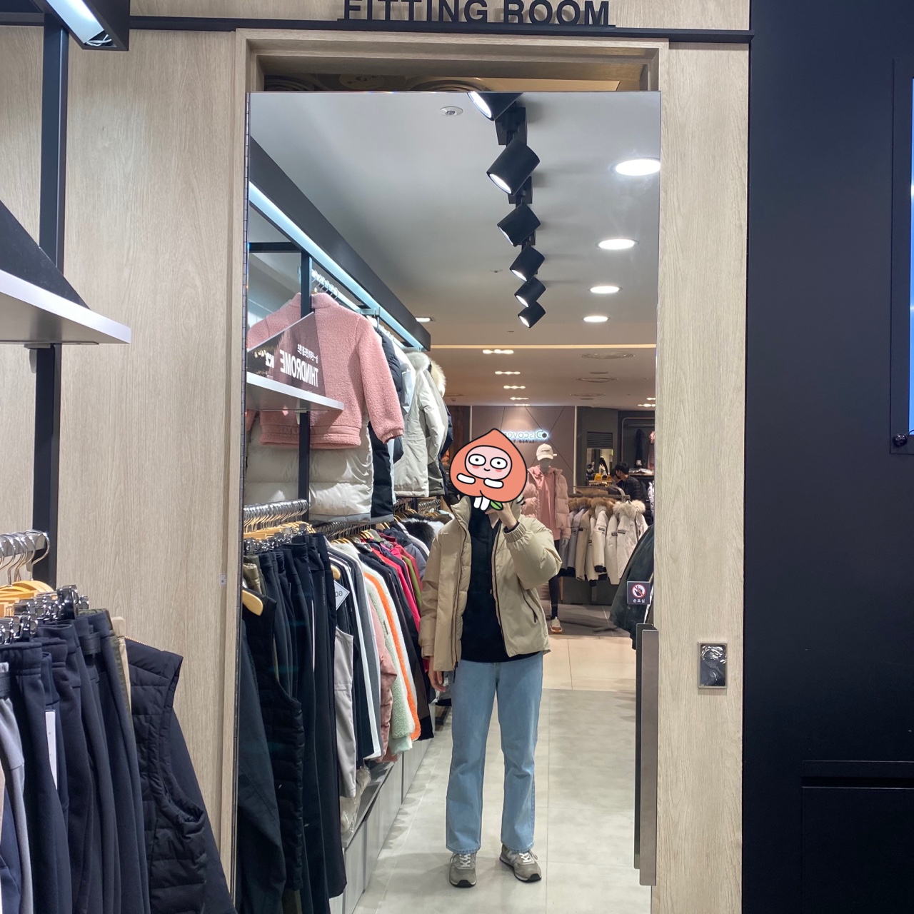 여튼 점원분 한 줄 요약으로는 제 체형 기준 저는 90이 정사이즈지만 이번에 나온 씬에어 구스다운은 오버핏이니 제 사이즈보다 하나 높이는 게 맞고 그래서 95가 찰떡이라고 합니다. 너무 단호하셔서 고민할 필요 없어서 좋았어요👍🏻