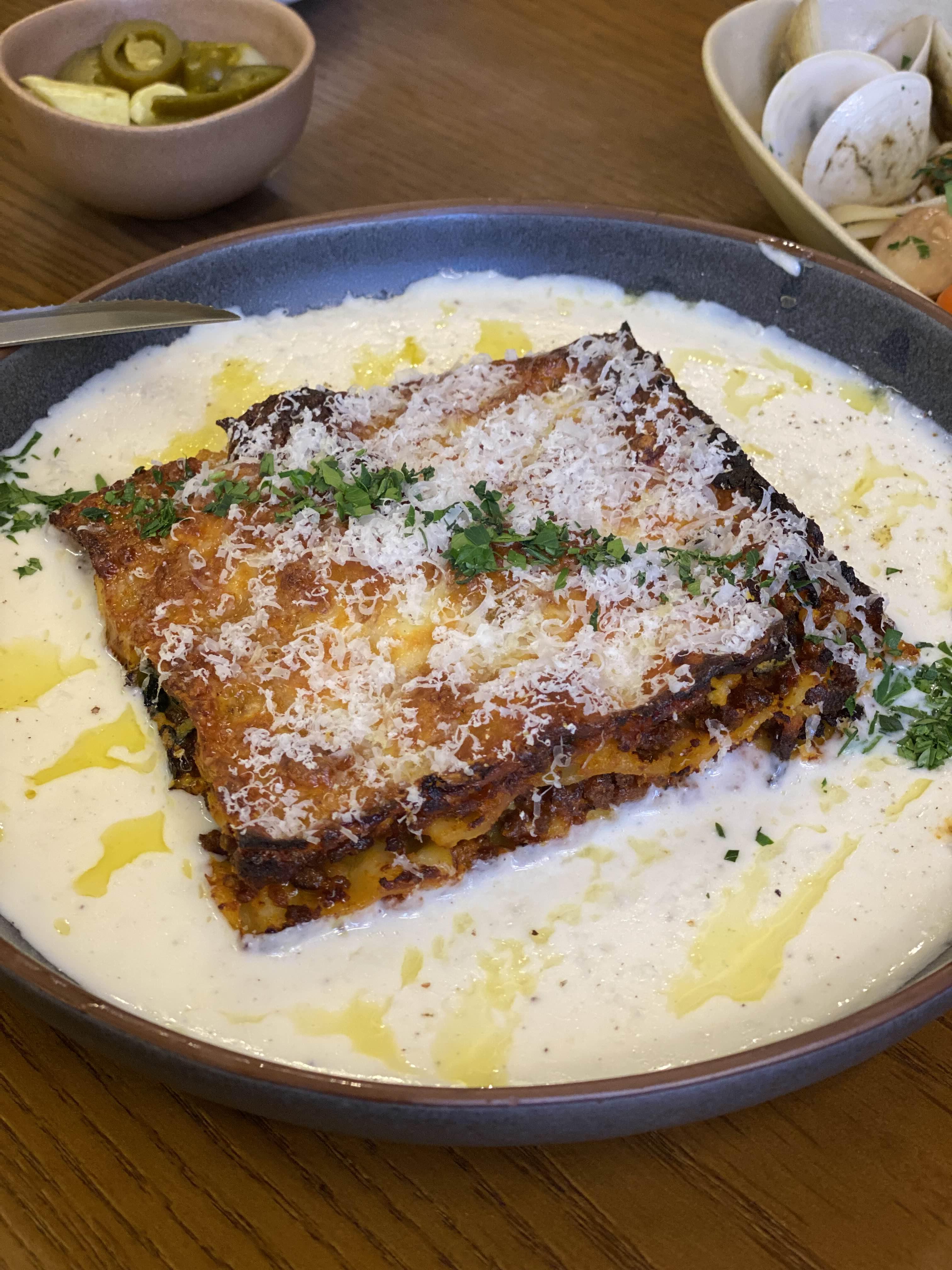 라자냐는 제일 윗장은 아주 바삭하게 익어있었어요.