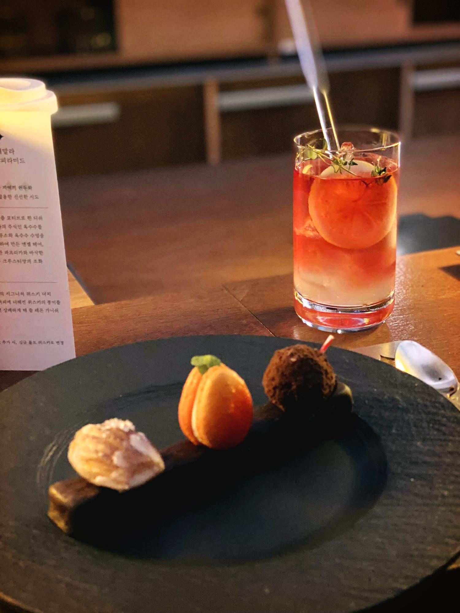 마들렌은 데킬라와 소금, 라임이 들어갔고, 마카롱은 망고의 달콤함과 끝에 오는 매콤한 맛이 굉장히 이색적이었어요.🥭
