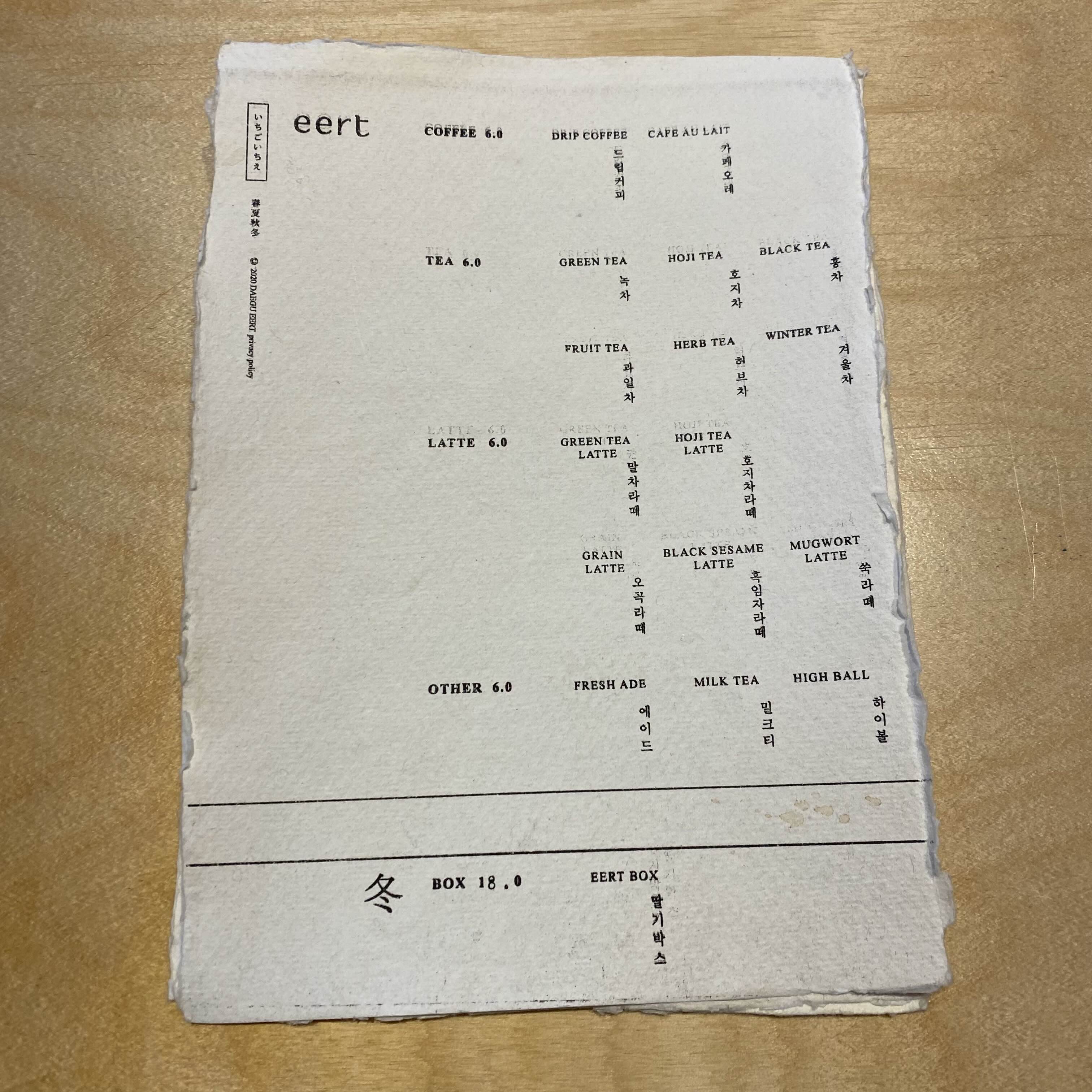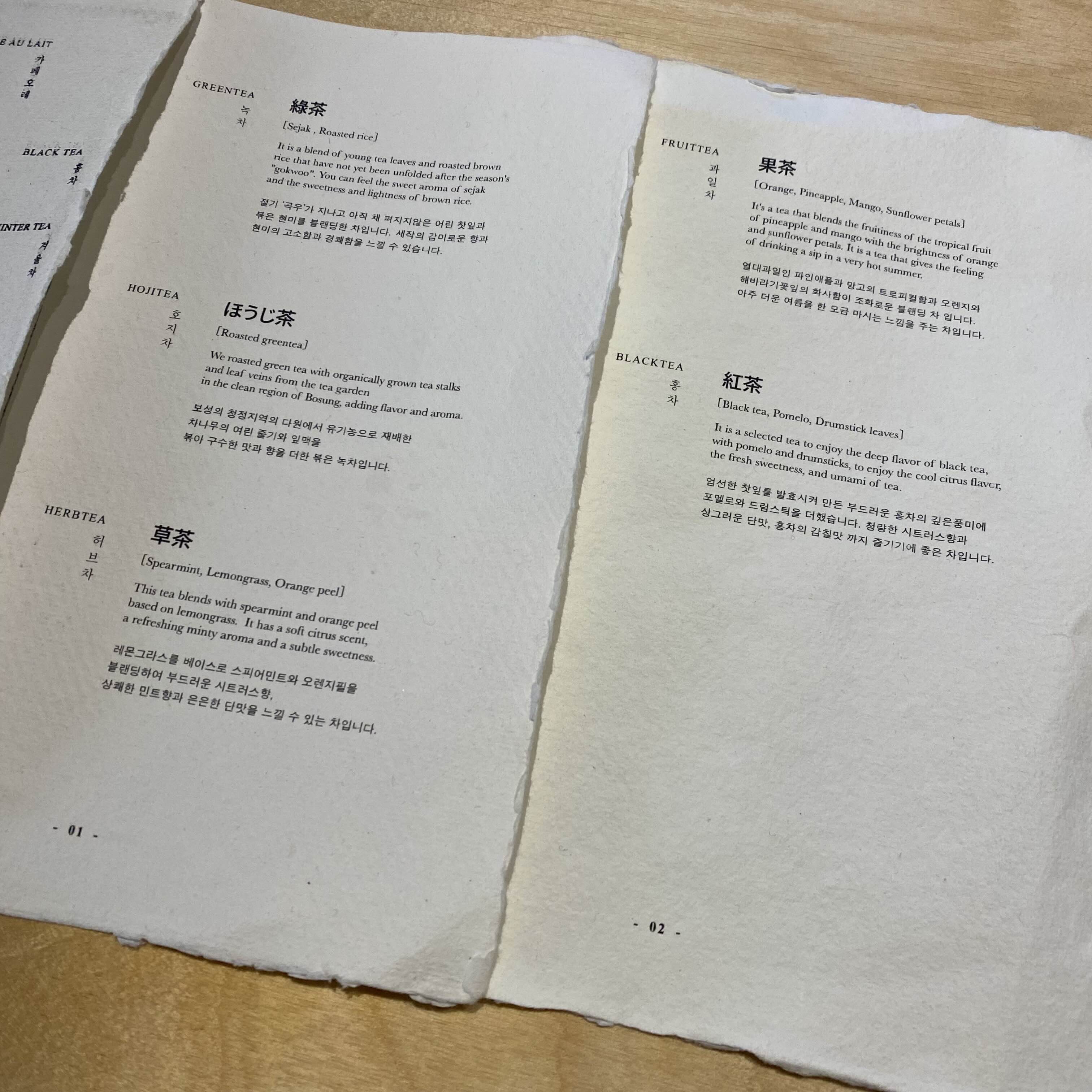 메뉴판이예요! 저는 과일차, 친구들은 각각 겨울차와 밀크티를 주문했습니다.