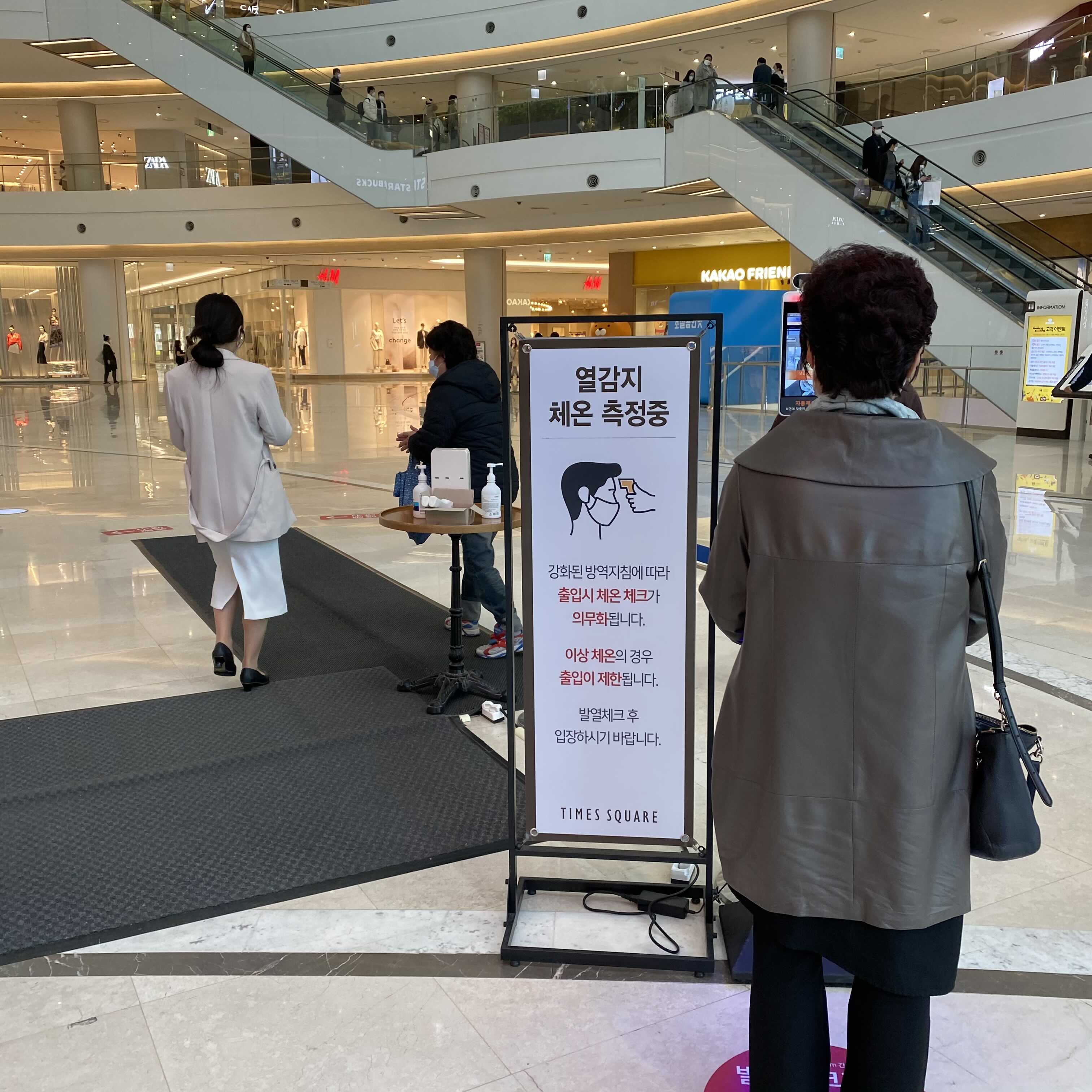 요즘엔 QR코드 체크하고 직원이 직접 체온 재러올 때까지 입장이 불가능해요.