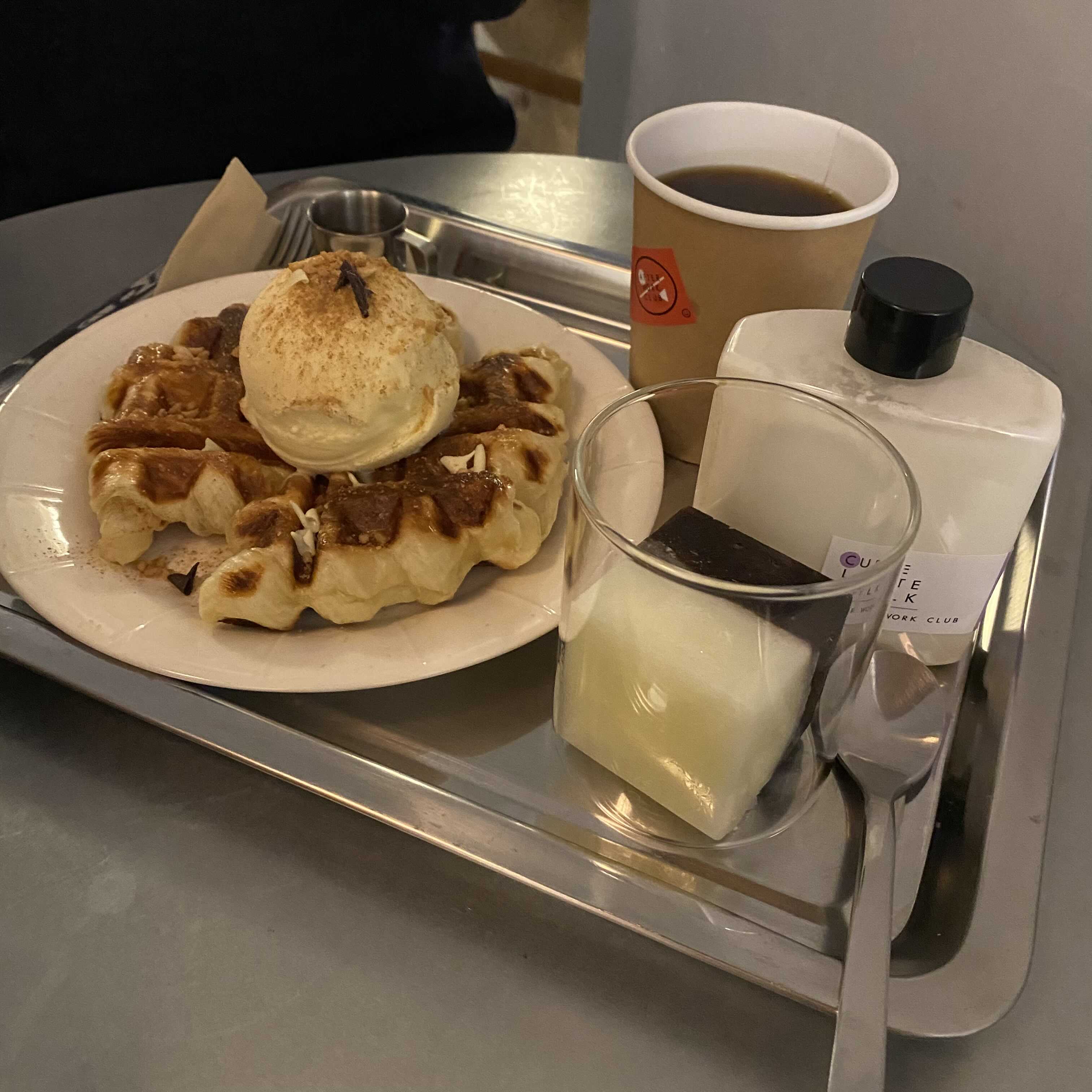 크로플 위에 아이스크림이 얹어져있는데 정말 맛있어요ㅠㅠ